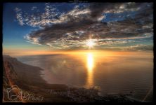Table Mountain (Afrikaans: Tafelberg) is a flat-topped mountain forming a prominent landmark overlooking the city of Cape Town in South Africa, and is featured in the Flag of Cape Town and other local government insignia. It is a significant tourist attraction, with many visitors using the cableway or hiking to the top. The mountain forms part of the Table Mountain National Park. The view from the top of Table Mountain has been described as one of the most epic views in Africa.