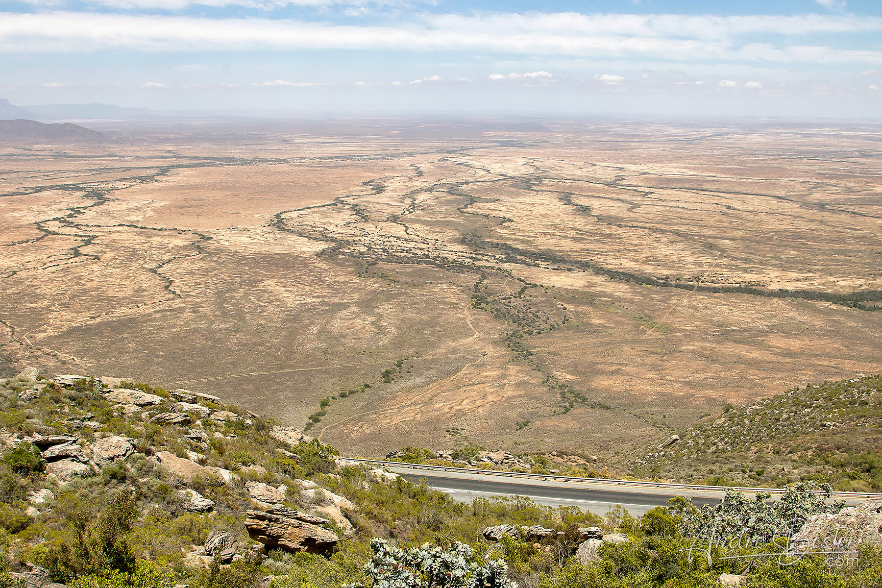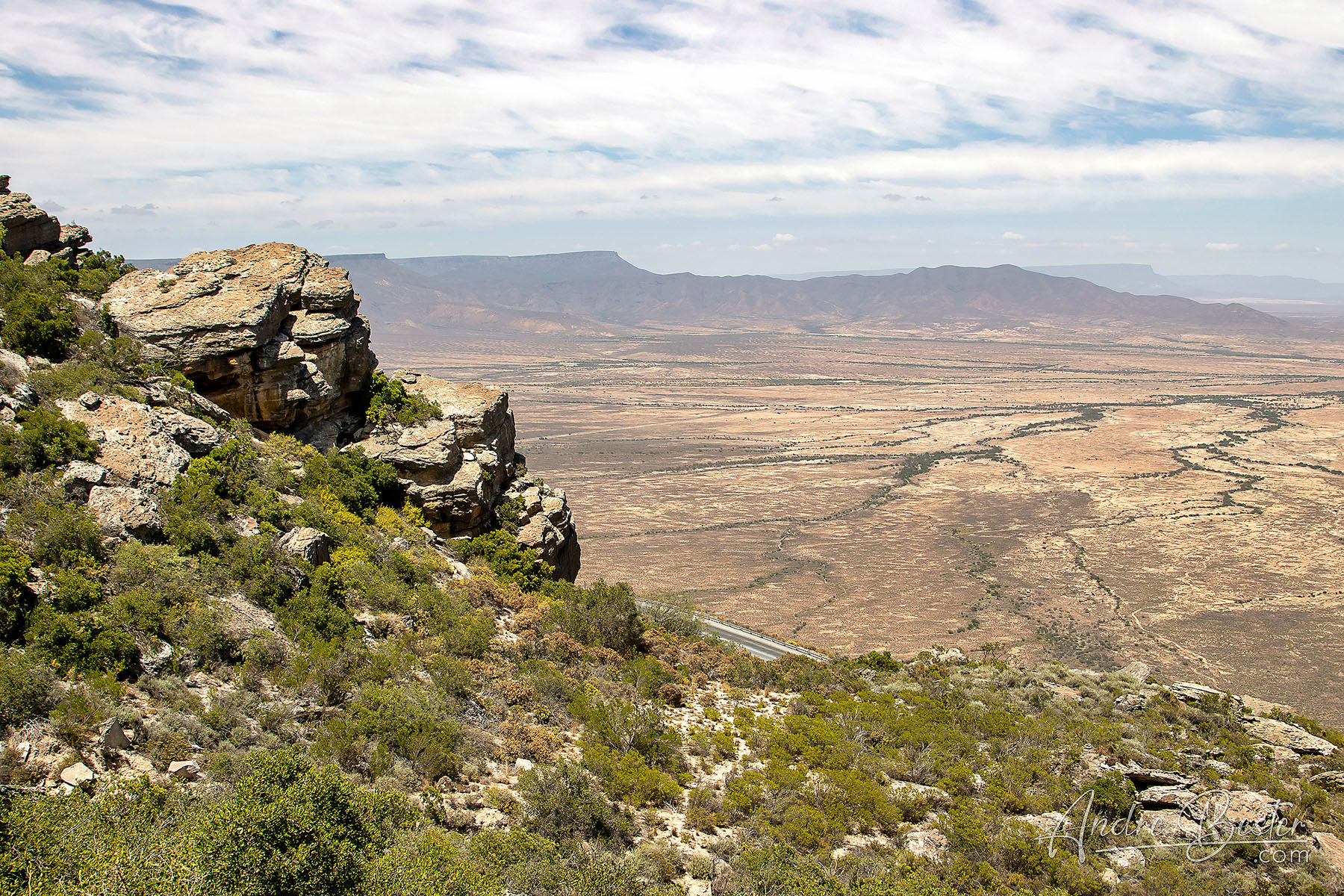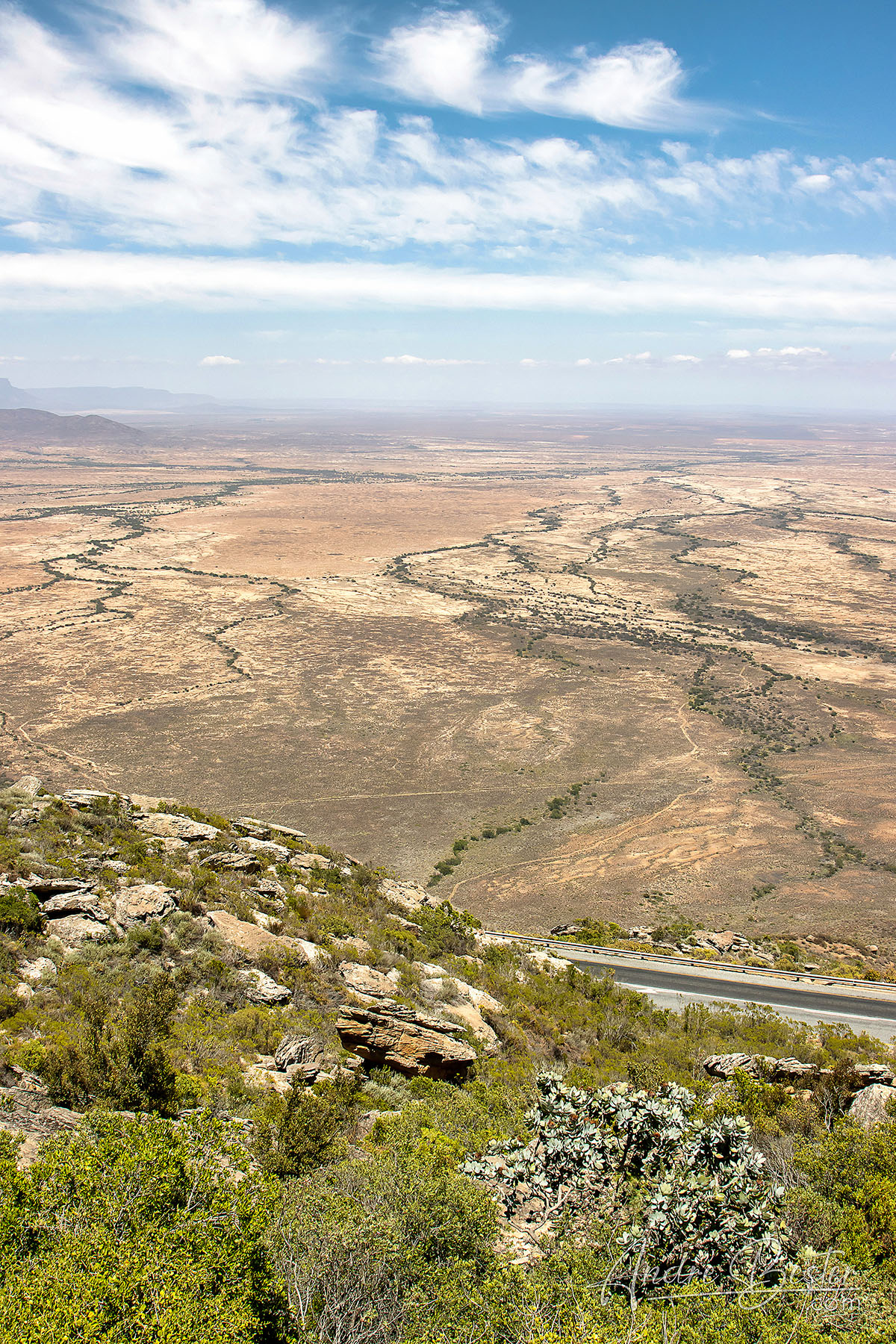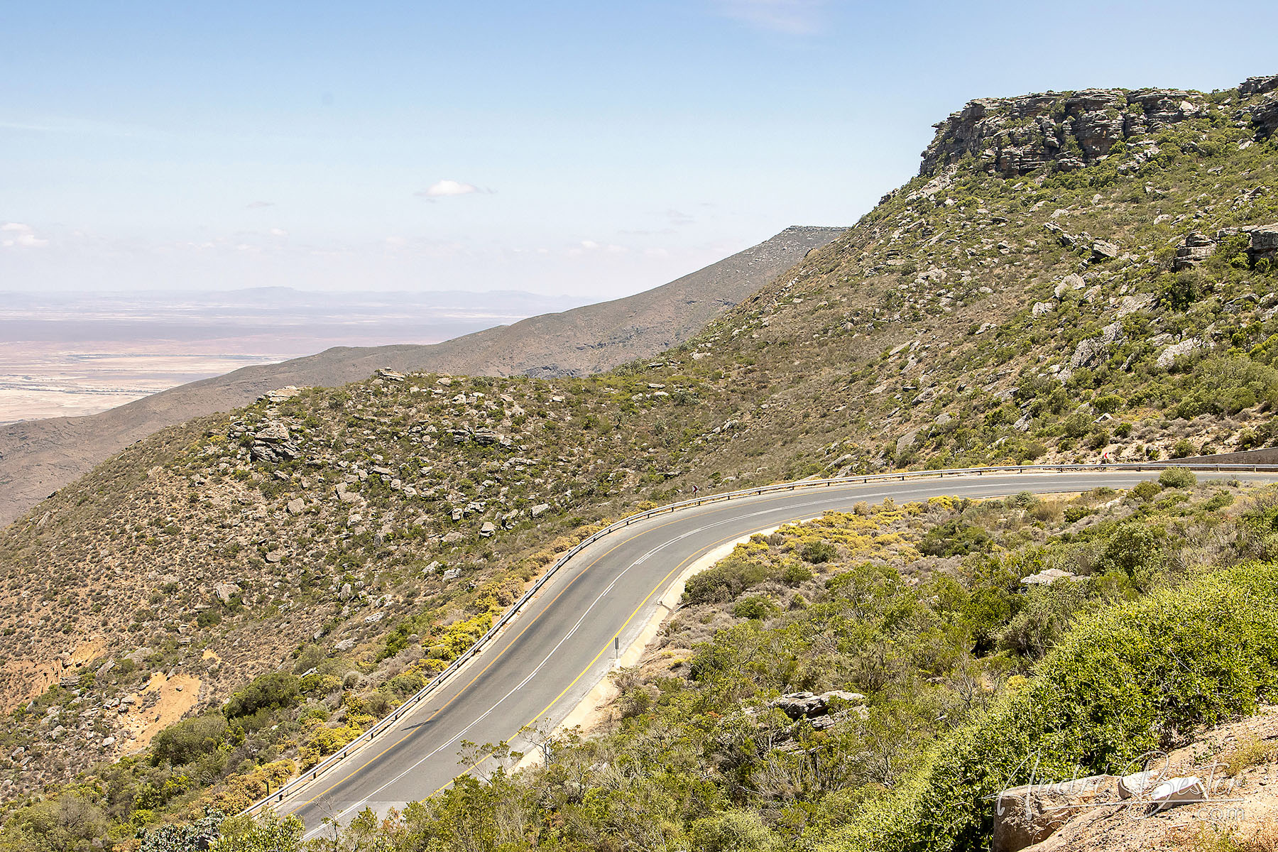 This beautiful tarred pass forms part of the R27 between Vanrhynsdorp and Nieuwoudtville and was originally built and designed by Thomas Bain. It is just under 9 km in length and climbs 595m to summit at 825m ASL, producing an average gradient of 1:15 with the steepest sections being at l:12. This is a well engineered pass with a good safety record providing you stick to the speed limits.History