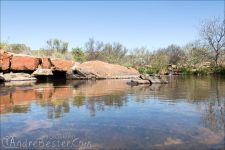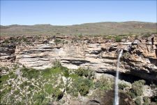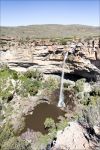 The Nieuwoudtville Waterfall plunges into the Maaierskloof. The Willems and Grass Rivers combine to form the Doring (thorn) River which tumbles over 100-metres into the Maaierskloof and the flow of water during the spring months fed by the spring rains across the Bokkeveld Escarpment provides a fine spectacle. The Nieuwoudtville Waterfall, which is situated some 7-kilometres north of Nieuwoudtville, is a short 100-metre walk from the parking area alongside the R357.